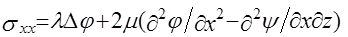 Используя эти выражения и закон Гука для изотропного тела, можно записать отличные от нуля компоненты тензора напряжений: