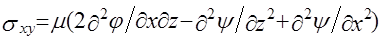 Если рассматривать смещения только в плоскости xz, то векторный потенциал будет иметь лишь одну компоненту и соответствующее уравнение для вектора Ф