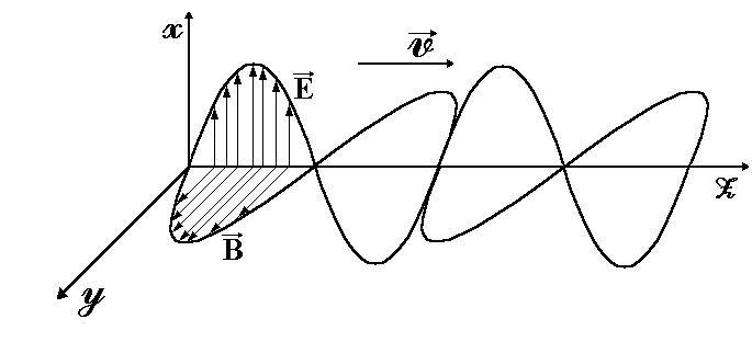 Из формулы (1) следует, что вектора и в электромагнитной волне колеблются в одинаковой фазе (синфазно), т.е. они одновременно обращаются в нуль и одновременно достигают максимальных значений.