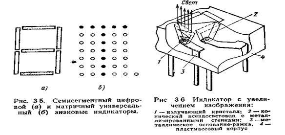 Все это предопределяет массовое производство индикаторных приборов: годовой выпуск приборов (в пере-счете на знак) превышает 1 млрд., объем производства почти такой же, как у диодов всех типов, очень высоки и темпы роста — удвоение объема за 5—6 лет.