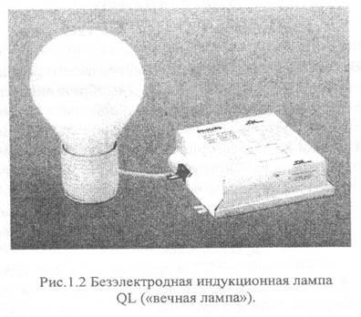 Современную историю источников света удивительные по продолжительности работы «вечные» лампы с новым принципом действия (рис.1.2). Это так называемые компактные безэлектродные высокочастотные люминесцентные лампы типа QL мощностью 85 Вт и сроком службы 60 тыс. часов, не уступающие по другим характеристикам лучшим разрядным лампам. Представленные в начале 90-х годов фирмой Philips, эти лампы находят всё большее применение, особенно в странах северной Европы. Совсем недавно они были использованы при модернизации освещения большой учебной аудитории в Финляндию. Авторы проекта утверждают, что очередная замена ламп будет проведена в 2025 году.