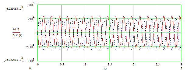 Для сравнения, выберем управляющий момент двигателя в виде произведения амплитудного значения момента на косинус с обратным знаком, т.е. :
