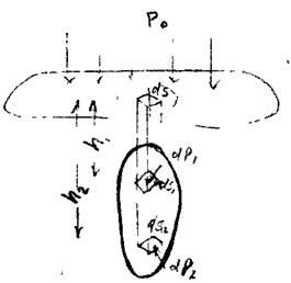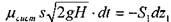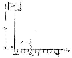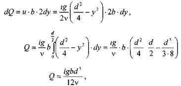 Вычислим величину средней скорости потока, для чего найдём величину расхода через щель. Элементарный поток жидкости dQ