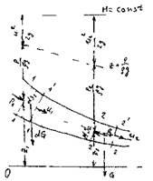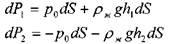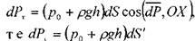 (на рисунке 2 слева на право). Грани, через которые жидкость втекает внутрь выделенного отсека и вытекает из него, имеют площадь . К этим граням приложены силы давления равные: