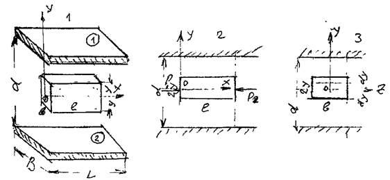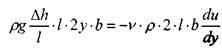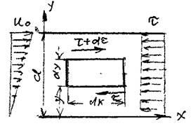 размеры пластины. Проведем в потоке щели два параллельных друг другу сечения на расстоянии / и выделим малый отсек жидкости в виде параллелепипеда со сторонами: и 2у.