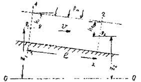 Если одна из пластин будет двигаться относительно другой неподвижной пластины с постоянной скоростью, а давление в щели будет постоянным по всей длине, то при таком параллельном перемещении движущаяся пластина будет увлекать за собой жидкость. Такое перемещение жидкости называется безнапорным фрикционным движением. Выделим