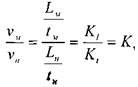 Тогда величины скоростей движения частиц в модели и натуре будут относиться между собой как: