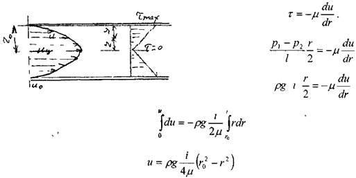 Гогда выделенный отсек жидкости будет находиться в состоянии равновесия под действием сил давления трения и силы тяжести.