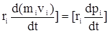 Рис.15 поясняет определение момента импульса точечной массы относительно точки О, который вычисляется также как момент силы [ ri