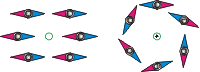 представляет собой некую восьмёрку с разделением колец в центре кольца, по которому течёт ток. Его схема показана на рисунке ниже: