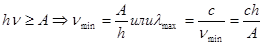 Третий закон выводится так же из формулы Эйнштейна, т.к. кинетическая энергия не может быть меньше нуля, то фотоэффект могут вызывать лишь кванты, энергия которых не меньше работы выхода, т.е. .
