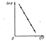Если на графике откладывать зависимость 1n σ от 1/T, то для полупроводников получается прямая линия, изображенная на рис. 2. По наклону этой прямой можно определить ширину запрещенной зоны ΔW.
