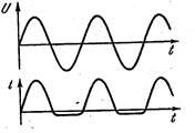 использован для выпрямления переменного тока. На рис. 12 показан график тока, текущего через переход, в том случае, если приложенное напряжение изменяется по гармоническому закону. В этом случае ширина слоя, обедненного носителями, и сопротивление перехода пульсируют, изменяясь в такт с изменениями напряжения.