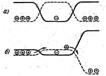 В отсутствие внешнего электрического поля электроны проводимости и дырки движутся хаотически. При включении поля на хаотическое движение накладывается упорядоченное движение: электронов против поля и дырок — в направлении поля. Оба движения — и дырок, и электронов — приводят к переносу заряда вдоль кристалла. Следовательно, собственная электропроводность обусловливается как бы носителями заряда двух знаков— отрицательными электронами и положительными дырками.
