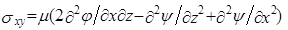 Используя эти выражения и закон Гука для изотропного тела, можно записать отличные от нуля компоненты тензора напряжений: