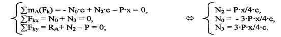 3. Затем составляются уравнения равновесия так, чтобы в каждое уравнение входило одно неизвестное усилие.
