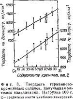 Подобные данные, равно как и характер зависимости прочности от состава, плотности от состава и т.п. делают возможным довольно точное предсказание характеристик сплавов германия и кремния в зависимости от содержания в них составляющих сплав элементов.