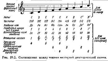 тон, имеющий частоту в 256 колебаний в секунду, называется до (С) средней октавы. Гамма, приведенная в этой таблице, известна под названием до мажор, где С является основным тоном, или тоникой.