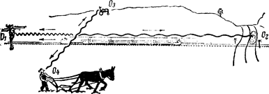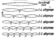 На рис. 14 показано, как получаются в открытой трубе основной топ и первые три обертона. Для основного тона длина