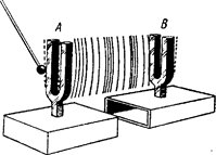 тем, что звуки, возбуждаемые колеблющимися струнами, язычками,