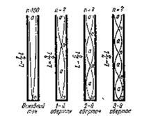 (рис. 13 Столб воздуха, совершающий колебания с обертонами)