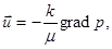 Это соотношение называется законом фильтрации Дарси (по имени французского ученого, установившего его экспериментально в 1856г.). Величина k=d2