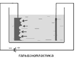 . Особое техническое значение имеют покрытия трудноокисляемыми металлами, в частности никелирование и хромирование, а также серебрение и золочение, часто применяемые для защиты металлов от коррозии. Для получения нужных покрытий предмет тщательно очищяют, хорошо обезжиривают и помещают как катод в электролитическую ванну, содержащую соль того металла, которым желают покрыть предмет. Для более равномерного покрытия полезно применять две пластины в качестве анода, помещая предмет между ними.