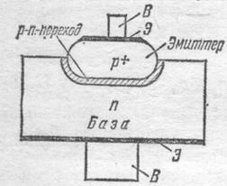 База эмиттер с помощью электродов (Э), образующих омические переходы, соединяются с выводами (В), посредством которых диод включается в электрическую цепь.