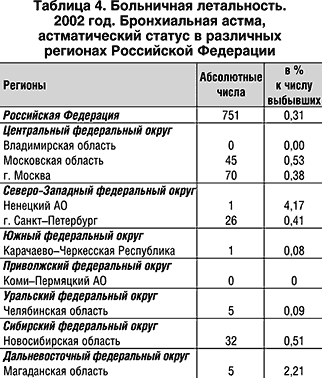 Этот процесс позволит уменьшить число больных с тяжелыми проявлениями болезни, инвалидность и летальность. В таблице 4 представлены данные больничной летальности, основной причиной которой явилась бронхиальная астма.