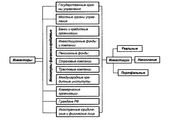 Инвесторы могут осуществлять вложение собственных заемных и привлеченных средств в форме капитальных вложений. Инвесторами могут быть органы, уполномоченные управлять государственным и муниципальным имуществом или имущественными правами, юридические лица всех форм собственности, международные организации и иностранные юридические лица, физические лица - резиденты и нерезиденты