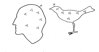 самое себя. Очевидно, что таким путем могут получиться кривые, имеющие, например, очертания человеческой головы или птицы (рис. 24). Оказывается, что, имея такую произвольную кривую, можно так подобрать число п и расположение фокусов