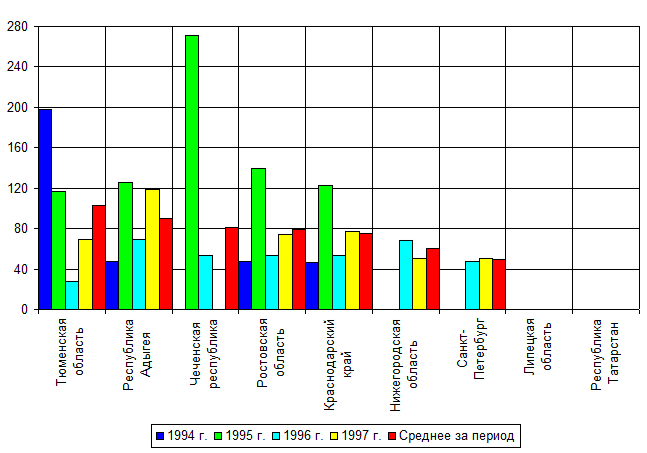 Менее 5% общей суммы налогов поступило в федеральный бюджет с территории Карелии, получившей налоговый «кредит» от федеральных властей. Единственным субъектом федерации (не считая Чечни), с территории которого в 1994 г. в федеральный бюджет не поступило ни рубля налогов, оставалась Республика Саха (Якутия). По минимальным оценкам, только прямые налоговые потери Федерации по этим четырем привилегированным республикам составили не менее 2 трлн. руб., или 2,3% доходов федерального бюджета.