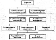 Влияние инфляции на финансовое состояние предприятия и его отчетность определяют с помощью индексов цен. Существуют две основные концепции: а) концепция финансовой природы капитала, предполагающая абстрагирование от предметно-вещ-ностной структуры активов предприятия; при этом отражение активов в учете делается либо по номинальным ценам, либо по ценам, выраженным с помощью общего индекса цен в денежных единицах одинаковой покупательной способности; б) концепция предметно-вещностной природы капитала, ориентирующаяся либо на индивидуальные индексы цен по конкретной номенклатуре продукции и товаров, либо на комбинацию индивидуальных и общего индекса цен.