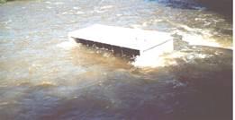 Много вопросов о её заиливании, зарастании водорослями и т.д. Брёвна, крупные ветки, прочий крупногабаритный мусор мы сеткой отвернём. Ну а всё остальное пройдёт через неё как по конвейеру. В зимний период применим давно используемый плотогонами способ поднятия теплых нижних слоёв воды с помощью нескольких брёвен перед установкой имеющих на одном конце груз, а на другом – поплавок. Вода, поднимаясь, размоет во льду необходимую нам майна.