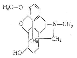 Морфин, алкалоид опийного мака. Обладает сильным болеутоляющим, выраженным снотворным и эйфорическим действием. Тормозит условные рефлексы и усиливает действие наркотических снотворных и местноанастизирующих средств. Возбуждает рвотный центр и понижает возбудимость дыхательного и кашлевого центров, тормозит двигательную и секреторную активность желудочно-кишечного тракта. Понижает основной обмен. Гидрохлорид морфина используют в медицине как обезболивающее средство. Длительное применение приводит к наркомании (морфинизму).[3]