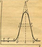 называется шириной пика у основания (m). Он определяется расстоянием между точками пересечения касательных, проведенных к точкам перегиба С