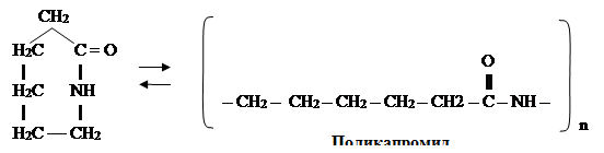 Капрон – полиамидное волокно, получаемое из поликапроамида, образующегося при полимеризации капролактама (лактама аминокапроновой кислоты):