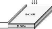 Простейшая конструкция солнечного элемента (СЭ) – прибора для преобразования энергии солнечного излучения – на основе монокристаллического кремния показана на рис. 2. На малой глубине от поверхности кремниевой пластины p-типа сформирован p-n-переход с тонким металлическим контактом. На тыльную сторону пластины нанесен сплошной металлический контакт.