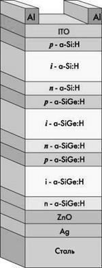 | Рис.16. Трехкаскадный солнечный элемент на основе сплавов a-SiGe:H