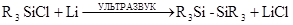 Хлорсиланы под действием ультразвука реагируют с литием, при этом получают высокий выход дисиланов по по общей схеме:
