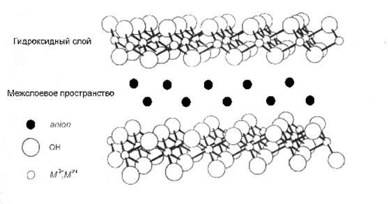 и анионов, находящихся в межслоевом пространстве. Интерес исследователей к этому классу соединений обусловлен возможностью вариации их свойств путем замещения анионов в межслоевом пространстве или атомов металла в гидроксидном слое.
