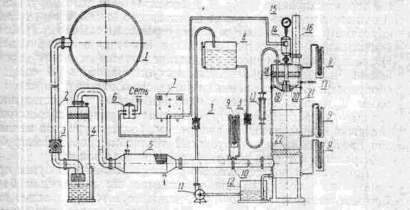 оборудованный гидравлическим затвором, а оттуда забирается насосом 11