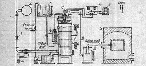 куда поступал также и воздух; далее газовая смесь поступала в печь 17.