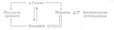 , причем шестичленные нафтены в значительной степени изомеризуются в пятичленные; у некоторых, например у метилциклопентана, происходит раскрытие цикла без расщепления. Гидрокрекинг полициклических нафтенов, например декалина, протекает легче, чем гидрокрекинг соответствующих нормальных парафинов (C10