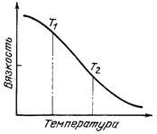 Схематическая диаграмма вязкости термопластичных полимеров в зависимости от температуры: Т1