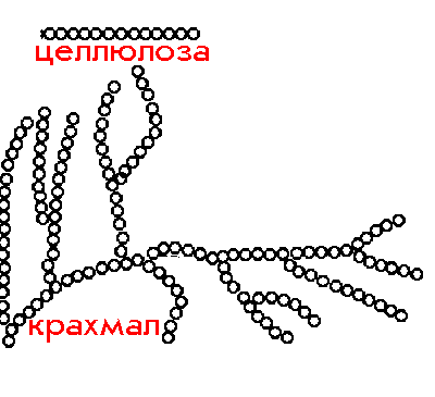 , как и у крахмала. Целлюлоза тоже является природным полимером. Ее макромолекула состоит из многих остатков молекул глюкозы. Может возникнуть вопрос: почему крахмал и целлюлоза — вещества с одинаковой молекулярной формулой — обладают различными свойствами?