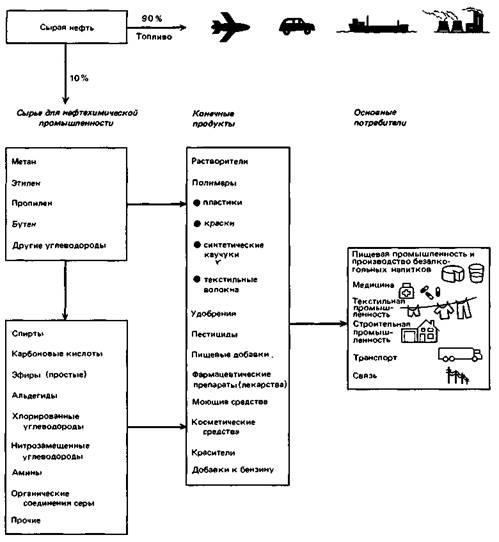 Сырая нефть представляет собой маслянистую жидкость, окраска которой может быть самой разнообразной – от темно-коричневой или зеленой до почти бесцветной. В ней содержится большое число алканов. Среди них есть неразветвленные алканы, разветвленные алканы и циклоалканы с числом атомов углерода от пяти до 40. Промышленное название этих циклоалканов-начтены. В сырой нефти, кроме того, содержится приблизительно 10% ароматических углеводородов, а также небольшое количество других соединений, содержащих серу, кислород и азот.