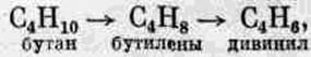 а также подбору катализирующих систем. К ним относились, в частности, исследования А. А. Баландина и сотрудников, выполненные в Институте органической химии АН СССР, работы Г. Д. Любарского, М. Я. Кагана и С. Я. Пшежецкого в физико-химическом институте им. Л. Я. Карпова. В результате, уже в 40-х годах удалось найти условия и катализаторы реакций дегидрогенизации бутиленов в дивинил (с выходом, близким к термодинамически возможному — 37 % на пропущенный олефин) и бутана в бутилен.