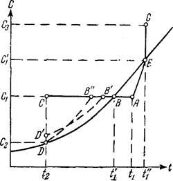 а конечное состояние раствора—точкой D на кривой растворимости, соответствующей равновесной концентрации C2