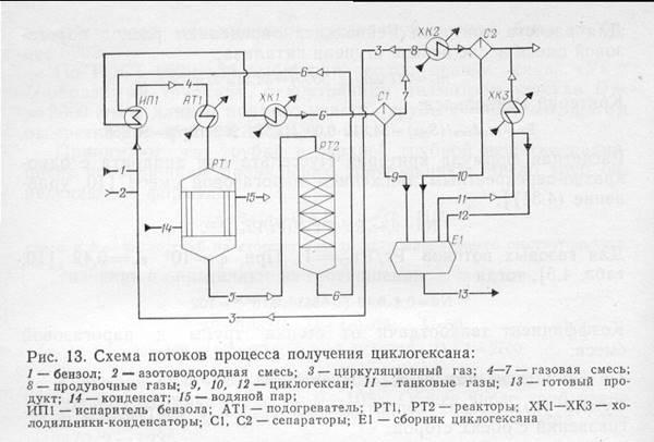 Принципиальная схема процесса получения циклогексана представлена на рисунке.